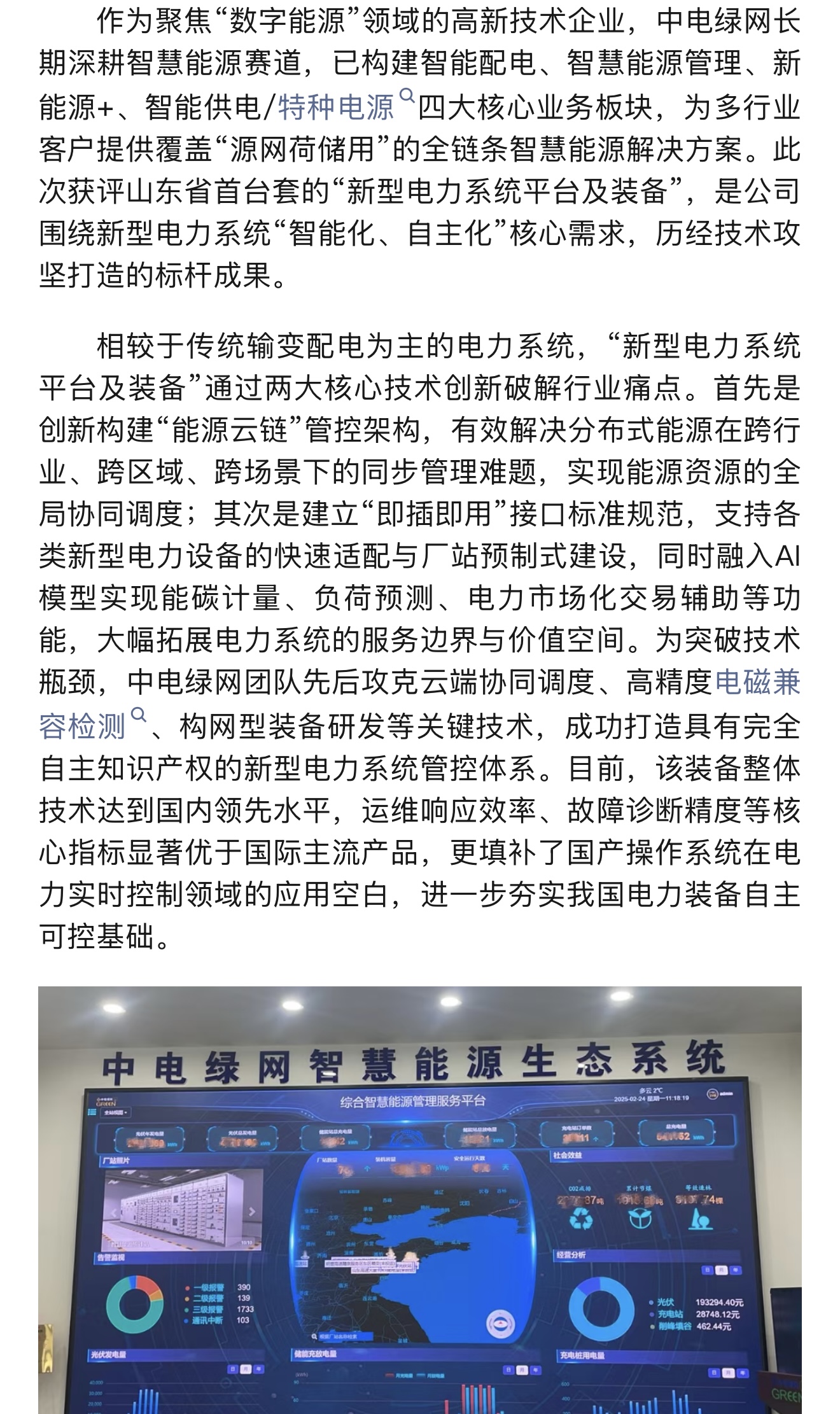 2025年10月30日,青島高新公眾號發(fā)布一篇“中電綠網(wǎng):山東省首臺套創(chuàng)新成果助力“數(shù)字能源”高質(zhì)量發(fā)展”報道,具體內(nèi)容如下: